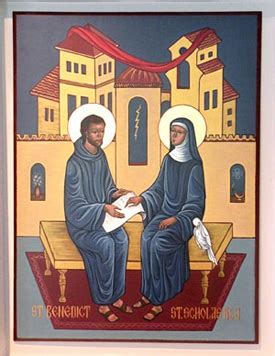 We know precious little of the life of Saint Scholastica, which was included by Saint Gregory the Great in his Dialogues, a book about the holy men and women of Italy of his time. We know that she had a convent near the great abbey of Monte Cassino, where he lived the last years of his life, and that she would go out of the convent annually to visit her saintly brother and discuss the joys of the spiritual life.
